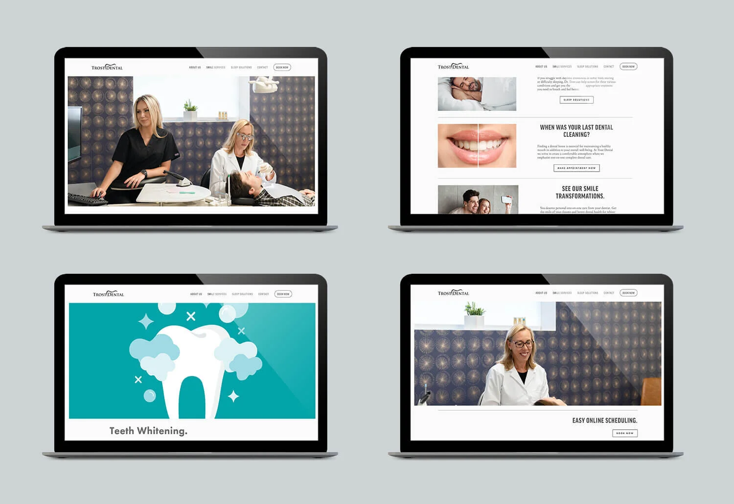 We worked with Dr. Trost and the Trost Dental team to analyze their business strategy and the local and regional market to determine our marketing priorities and establish baselines. Based on our research and competitive analyses of dental services providers in the cosmetic and sleep categories, our team developed a website, strategy, digital marketing plan and visual assets to maximize SEO, drive bookings and generate revenue.